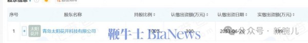 再往下看,该公司为青岛太阳花开科技有限公司全资持股。
