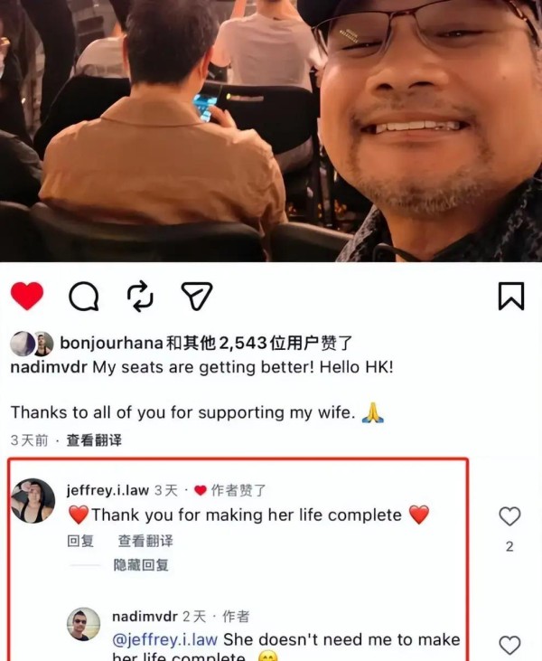 事情得从那晚说起。孙燕姿结束香港这一站的巡回,舞台灯光落下,粉丝们激动离场。就在这场余温未散时,有细心的粉丝发现纳迪姆不仅全程现身力挺太太,还特地在社交账号上感谢大家支持燕姿。其实现在有多少明星另一伴会刻意在公开场合低调而不失关心?可是,最“哇塞”的,还是纳迪姆和粉丝之间悄悄流转的一句留言。