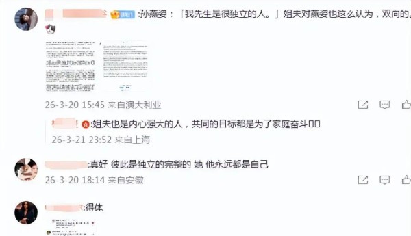 不少网友忍不住点赞,说纳迪姆的话实在得体,一下子把那种平等、伴侣各自独立不依存的关系展示得明明白白。再有铁粉抠细节“孙燕姿曾经说过我先生是个很独立的人”,看来夫妇俩真是双向奔赴,“姐夫对燕姿也是这么想的”。这两个人身上透出来的那份互为独立又珍惜彼此的气场,真的很难不令人佩服。