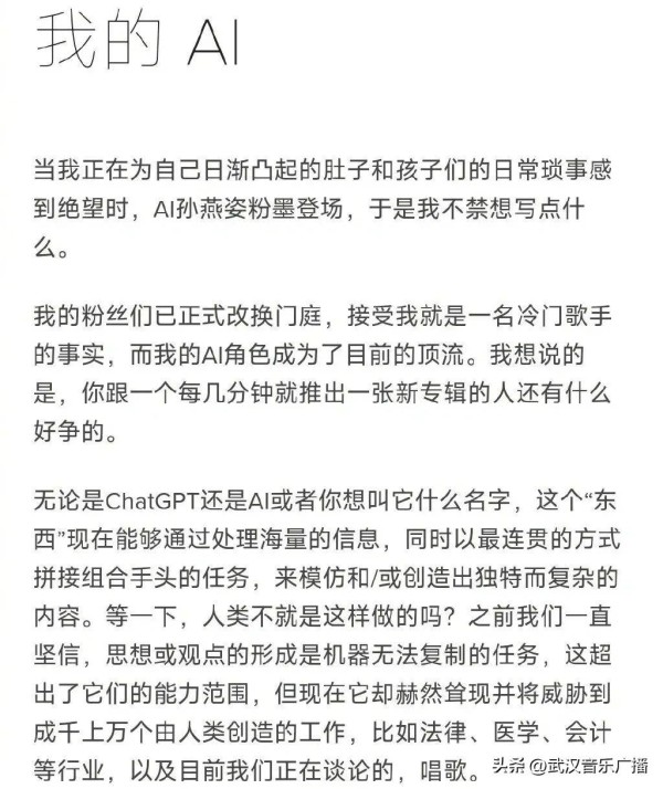 前阵子网上有人用AI模仿她的声音,她曾写下《我的AI》一文。