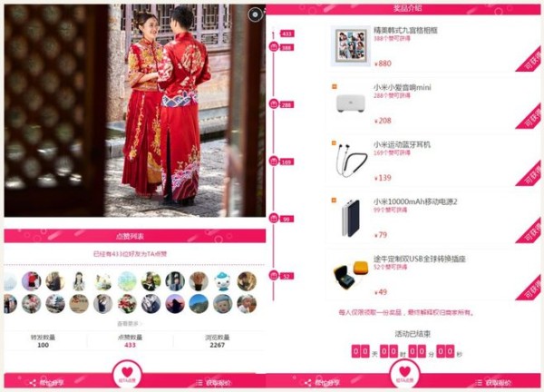 当然,利益驱动是必不可少的环节。因此,在设置点赞流程同时搭配了集赞奖励机制: