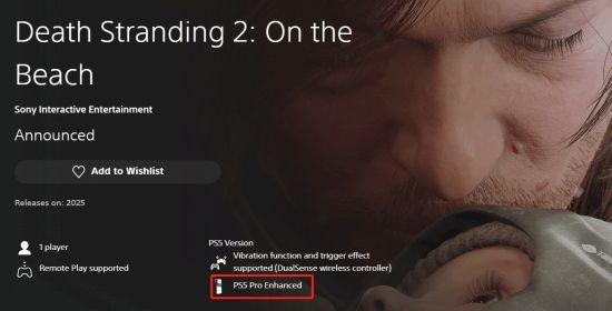 根据《死亡搁浅2》的PS商店页面信息显示,本作将支持PS5 Pro增强。