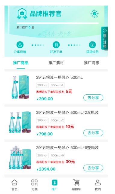 近日,南都湾财社记者从五粮液(000858·SZ)内部获悉,29度五粮液·一见倾心正在展开“裂变”的销售系统。所谓“裂变”,即消费者通过扫描“推荐官”码审核后,即可生成专属推广二维码,推荐他人下单购买可获得现金奖励。
