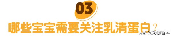 在为宝宝挑选奶粉时,妈妈们可以看配料表中是否有“乳清蛋白粉”“浓缩乳清蛋白粉”“脱盐乳清粉”“高油脱盐乳清粉”“高油乳清粉”“水解乳清蛋白粉”等字样,如果有且在配料表的位置比较靠前,意味着这款奶粉强化了乳清蛋白。尤其是对于以下几类宝宝可以多多关注: