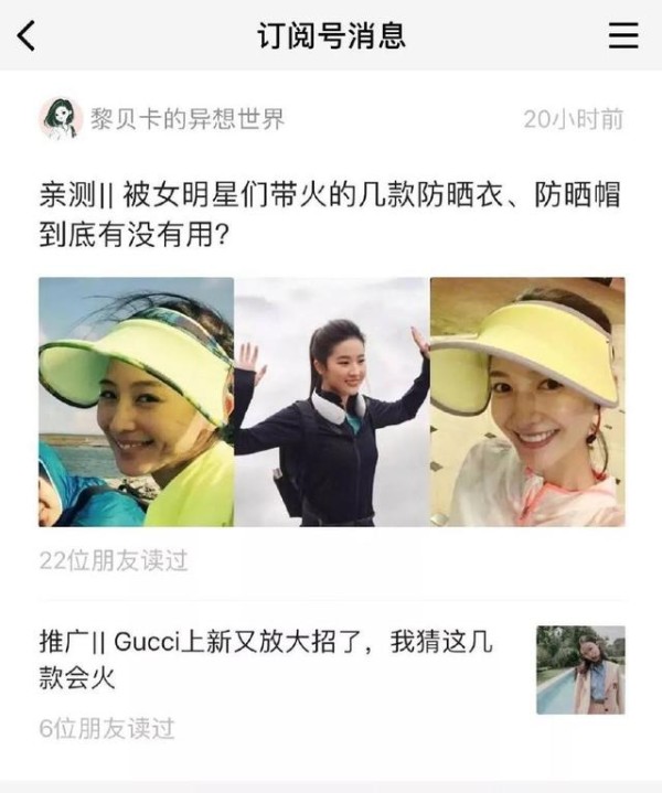 以往读者打开订阅号列表时,看到的是各公众号头像和标题,而改版后封面图片也将大幅露出,令标题和封面图片被置于更突出的位置。由于图片相对于文字而言具有较强的视觉冲击力,为了争夺影响力,时尚博主在公众号将在封面图片的选择与设计上下更大工夫。