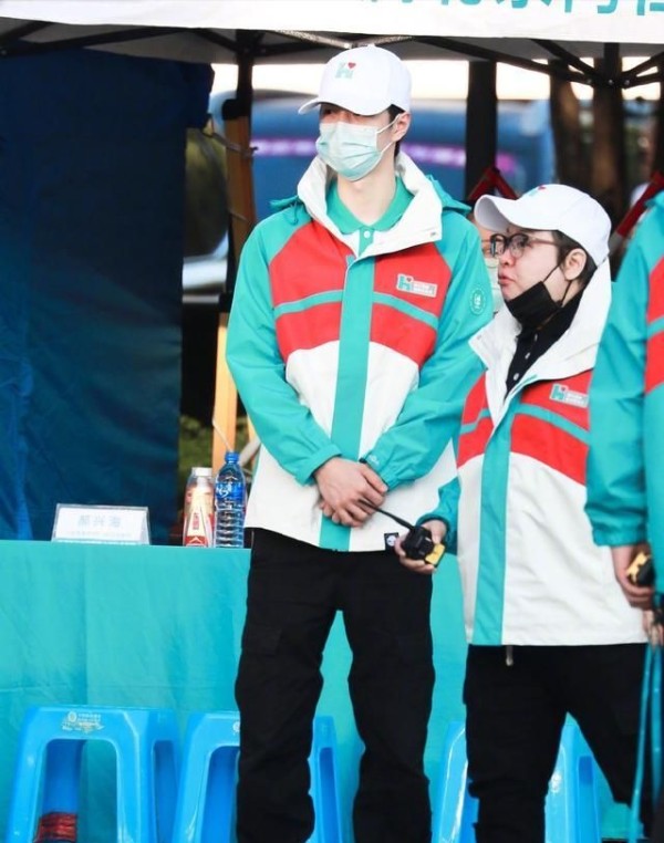 这一刻的王一博,我不愿称他为一个明星,因为此时此刻的他,早已成为了众多志愿者中的一员,此刻他不是一个演员而是一个普通的志愿者。