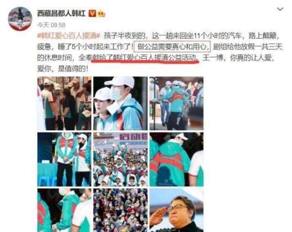 最后感谢韩红基金会的所有捐赠者,也感谢所有其他向河南提出援手的明星艺人,感谢所有像王一博一样奔赴前线的志愿者,生活因为有了你们变得更美好。