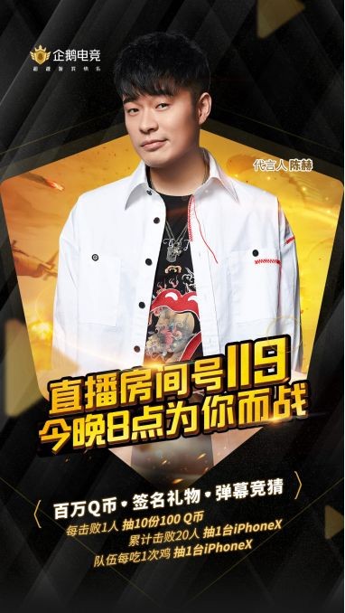 陈赫将会在3月23日,也就是今晚!在企鹅电竞的119房间进行首播,届时还会有由企鹅电竞为观众们带来的大礼!在晚上7点30分到8点的超凡问答陈赫专场,大家可以瓜分8W现金!8点正式开播后会有神秘嘉宾入场,大家可以猜一下会是谁哦~游戏过程中,陈赫不仅会带上包括SnakeTC沫子的队伍四排,还会带上现场粉丝,小伙伴们记得准时关注不要错过哦~