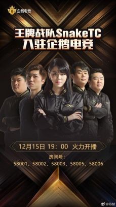在2017年年底,SnakeTC便入驻了企鹅电竞,这也是目前绝地求生竞技中不错的一只俱乐部,相信在之后大家可以看到陈赫与SnakeTC队员开黑互动,在享受陈赫幽默搞笑的直播风格时还能学到职业级的吃鸡技术~