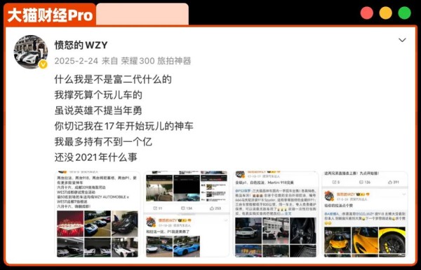 在他的地下车库,好几辆豪车并排停,他说自己就是个“玩车的”,钟爱法拉利,迈凯伦都算是赔钱货,具体有多少车呢?总价值“不到1个亿”。