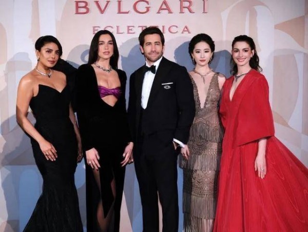 更绝的是她跟安妮·海瑟薇、普里扬卡·卓普拉同框的画面。