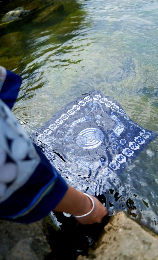 在贵州,本地蜡染工艺大师伍德芬自幼对蜡染的热爱从未减弱。在她仅3岁时便开始接触并喜爱上这种传统工艺,到6岁时在爷爷的帮助下完成了人生中的第一笔蜡染。她最终成为了贵州省省级非遗传承人及蜡染工艺大师,坚持在贵州传承和发展苗族传统的蜡染工艺,不断创新并寻找新的活力注入这项古老技艺中。