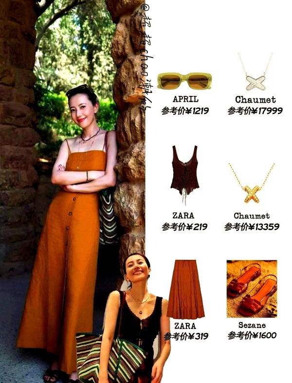 这条咖色吊带裙,其裙摆侧面的手工流苏设计堪称点睛之笔。有眼尖的网友发现,这款裙子实际上来自意大利小众品牌LaMarella的早秋新品系列,设计受到时尚博主追捧,凸显出品牌设计的独特性。