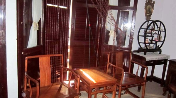 《大红灯笼高高挂》场景——连天红银丝夔凤纹靠椅与松竹梅书桌