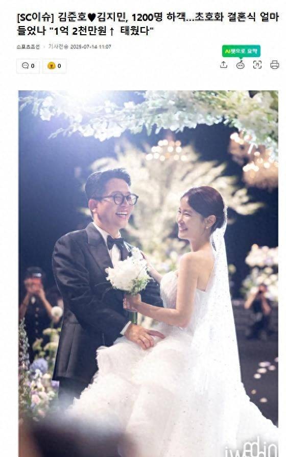金俊浩与金智敏的豪华婚礼:1.2亿韩元的盛大仪式引发热议