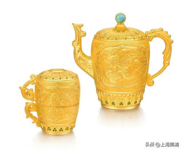 龙凤呈祥倒执壶(镶宝足金)