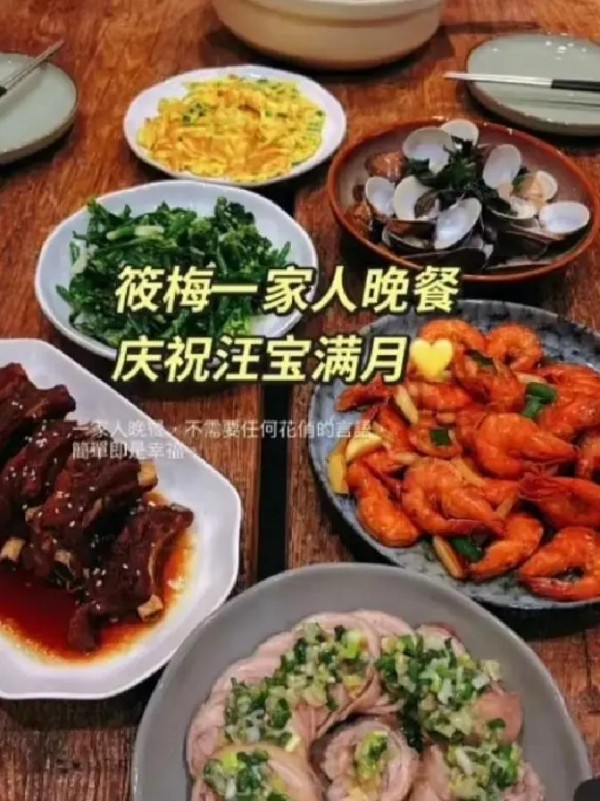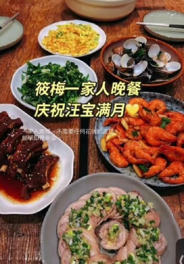马筱梅晒儿子满月宴,平凡家宴颠覆你对明星家庭的想象