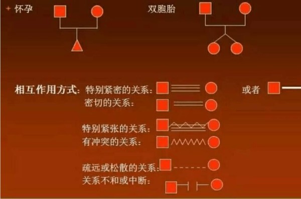 家族谱(家系图)是以符号的形式对家庭结构、成员之间关系、患病历史的描述。是社区护士迅速把握家庭成员健康状况和家庭生活周期等资料的最好的工具,是家庭健康档案的重要 组成部分。