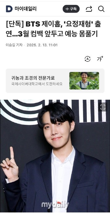 [独家] BTS J-hope 将出演综艺《妖精在炯》… 3月回归前综艺节目热身