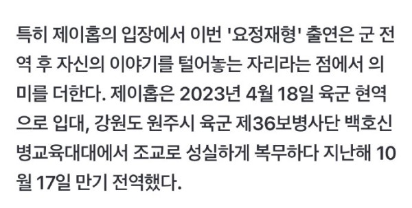 从J-hope的立场来看,此次出演《妖精在炯》是讲述退伍后自己故事的机会,因此意义更加重大。