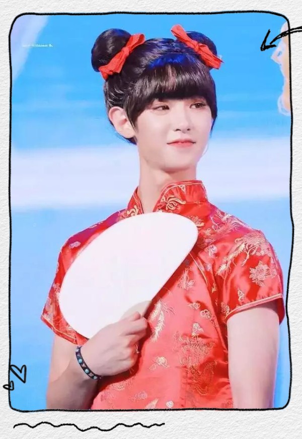 由于王源平日里给人的印象便是可爱风十足,因此他的女装造型同样走的是可爱路线,别有一番风味。