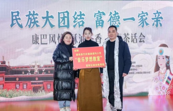 2月22日下午雨雪纷纷,位于浙江省杭州市富阳区常安镇永安山上的“乾方磨砺营”却热情洋溢,屋里,一场特殊的新春茶话会正在举行,酥油茶的醇香与锅庄舞的热情交织,将四川省德格县的挂职干部与富阳区新的社会阶层爱心人士的心连在一起,让“民族大团结 富德一家亲”这一主题融入在场每个人的心里。而把这些人联系到一起的,是来自于一名爱唱歌的藏族女孩的圆梦之旅。