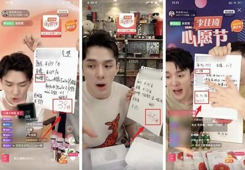 除此之外,李佳琦还会用价格阶梯的方式,不断地给用户惊喜,引导下单: