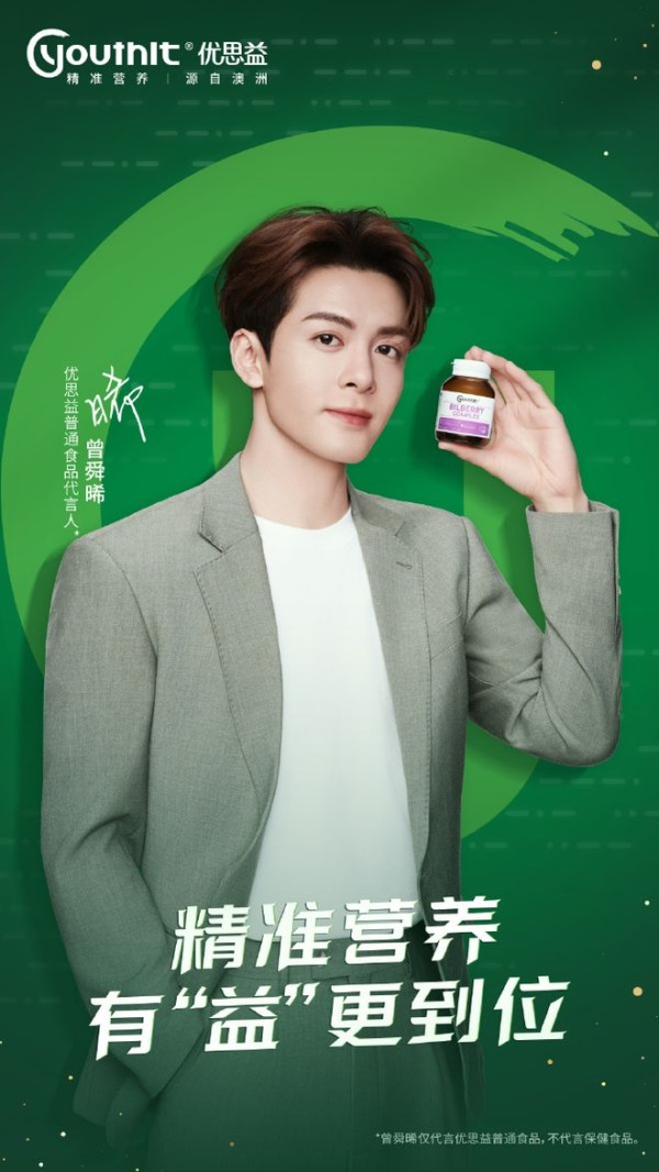 曾舜晞:优思益品牌官方代言人。2024年5月官宣后,围绕其“大眼仔”昵称策划了“眨眼暗号”营销事件,相关话题登上微博热搜。