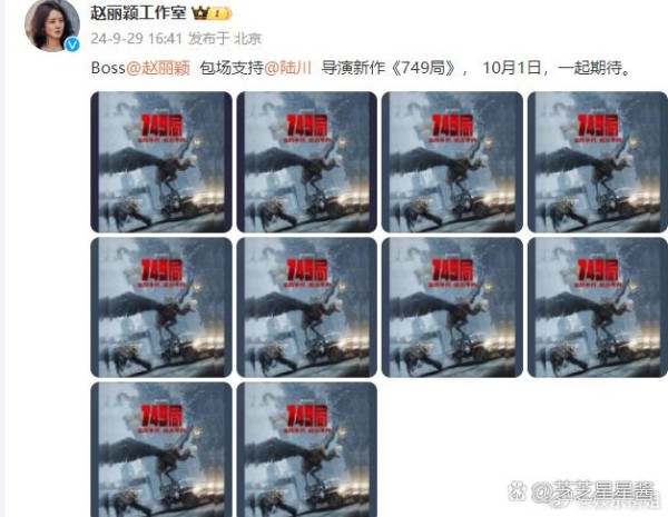 赵丽颖为了支持导演陆川的新作《749局》,特地包下了该电影的十场放映,这一举动受到了业内外的一致好评。不少网友认为这展现了赵丽颖作为影视明星的责任感和对中国电影的支持力度。同时,《749局》将于2024年10月1日正式上映,与另一部由赵丽颖主演的电影《浴火之路》同期竞争国庆档期。