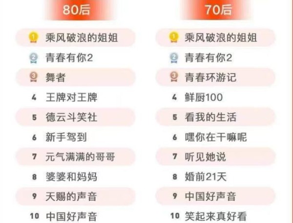 前不久,在微博的平台上发布了一组调查了关于70后到00后这几个年龄段的收视偏好统计,而且这份统计是只限于这几个年龄段的观众朋友对与综艺节目的喜爱度和收视率的调查。
