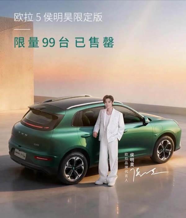 "限量99台的欧拉5侯明昊限定版24小时售罄,敦煌绿车身与明星签名尾标尽显个性,480km续航+6kW放电功能兼具实力,粉丝专属内饰与交车礼遇打造情感纽带。"