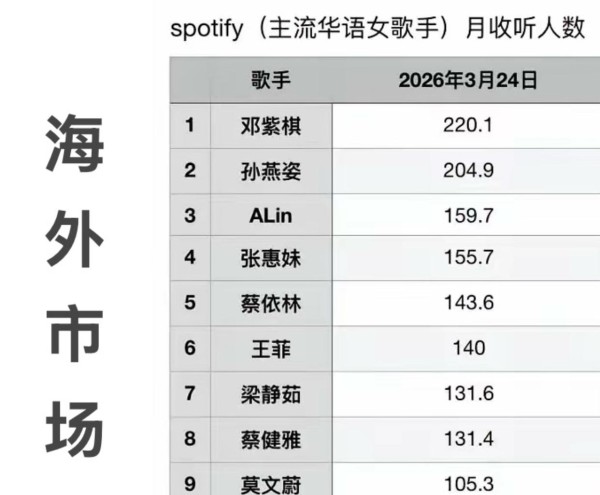 当我们谈论“热度”时,它早已不是一个模糊的概念。 它被量化成Spotify的月听众数、巡演的票房美元、演唱会门票的售罄秒数、短视频平台的粉丝增量、以及社交媒体上的话题阅读量。 在这个数据为王的时代,每一位歌手的位置都被清晰地标注。 有人凭借无短板的综合实力登顶封王,有人依靠时代情怀构筑起坚固的城池,也有人正以惊人的速度向上攀升,试图改写游戏的规则。 这场关于华语乐坛女歌手热度的讨论,没有终点,只有不断刷新的数据和下一个即将到来的名场面。