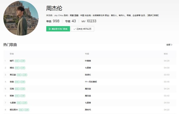 这一数据足以说明周杰伦在华语乐坛的深厚根基。