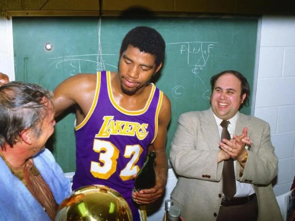 魔术师在1979年被湖人用状元签拿下,新秀赛季他在常规赛期间的数据表现并不炸裂,场均贡献18.0分、7.7篮板和7.3次助攻,不过凭借他出色的球技和领导能力还是赢得了湖人球迷们的喜爱,同时入选了最佳阵容一阵。到了季后赛,魔术师约翰逊才认真起来,和天勾贾巴尔一起带着湖人直奔总决赛,当湖人和76人在总决赛鏖战5场后,打成3-2时,贾巴尔伤退,魔术师约翰逊一人带着湖人打G6,约翰逊更是史无前例地从控卫改打中锋,此役,他一人砍下42分15篮板7助攻3抢断的历史级数据,并率领湖人夺冠,拿到FMVP,一战封神!