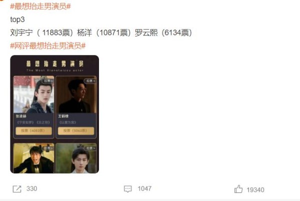 截止于目前,2023年最想抬走男演员榜单票数最高的三位男星是:刘宇宁、杨洋、罗云熙,这三位男演员今年都有作品与观众见面,并且他们的作品都获得非常高的关注度和热度。