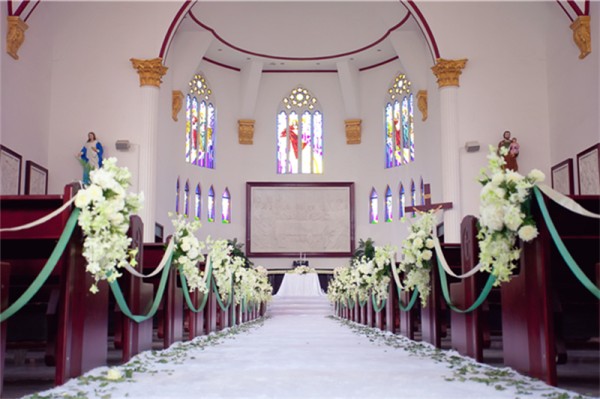 5、蓝色系——最宁静纯美蓝色,搭配白色,绿色、浅黄色,是夏季婚礼、或海滩婚礼最爱的颜色。而白兰花是最佳搭配花材,最宁静、纯美的婚礼色彩。迦南之约—济南辛甸教堂婚礼部:地址:济南市历城区辛甸教堂4楼婚礼部七里河路与花园路交叉口向北500米(保利海德公馆南侧)咨询电话:0531-88010038