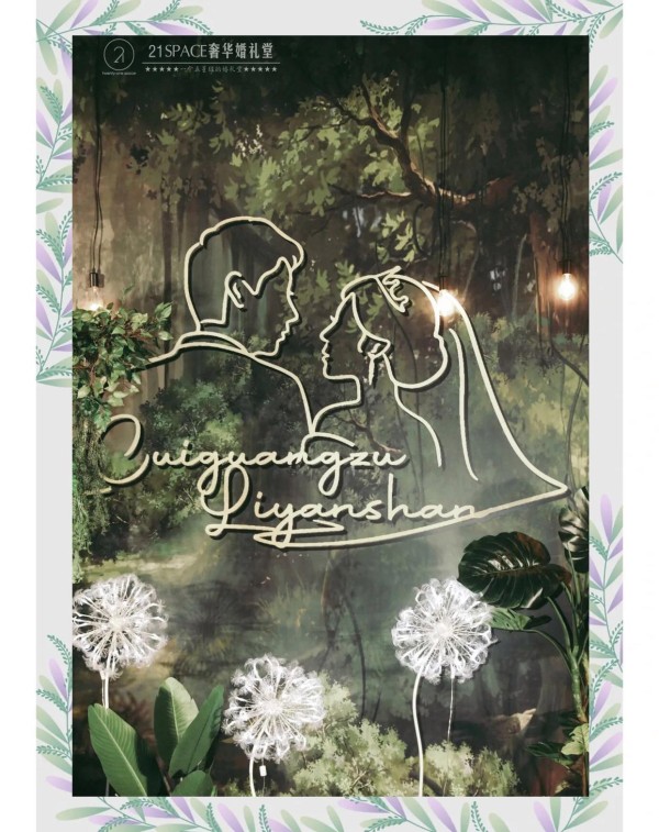 韩式经典,历久弥新,满眼尽是清新脱俗的绿与白。婚礼的浪漫与清新,恰似那对新人纯粹而执着的爱情。