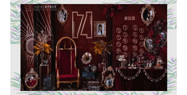 复古红丝绒与高级剧场风的完美融合,打造出一场别致的婚礼。浓郁而热烈的色彩,如同挚爱般的深情与温暖。自带高级复古感的布置,令人一眼便沉醉于这场视觉与听觉的盛宴。巨幕缓缓拉开,每一帧都仿佛电影般的细腻与动人。复古旋律在空气中弥漫,让人仿佛穿越时空,感受那永恒而挚真的爱情。