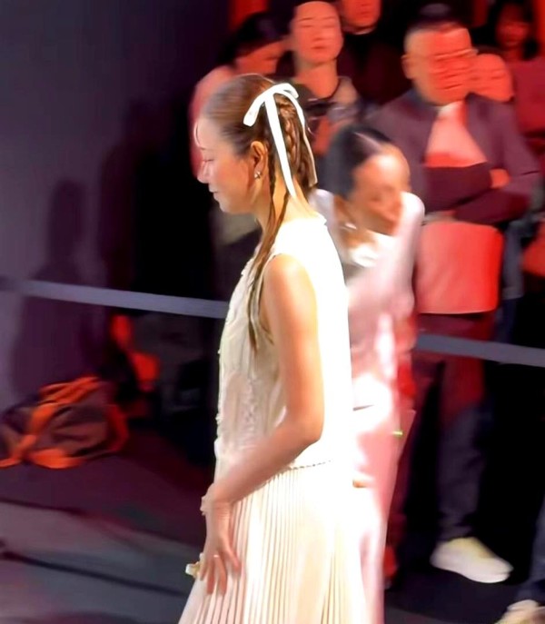 她带着双马尾,穿着白裙站在红毯上,现场的目光全都聚在她的身上——