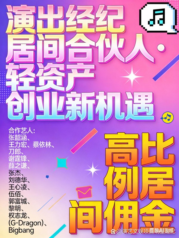 演出经纪居间合伙人|轻资产创业,一起搞钱!