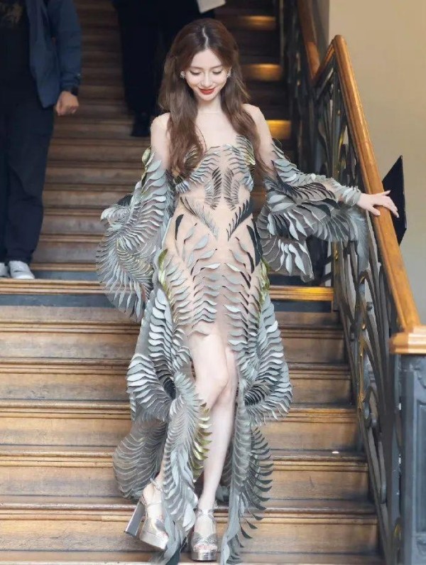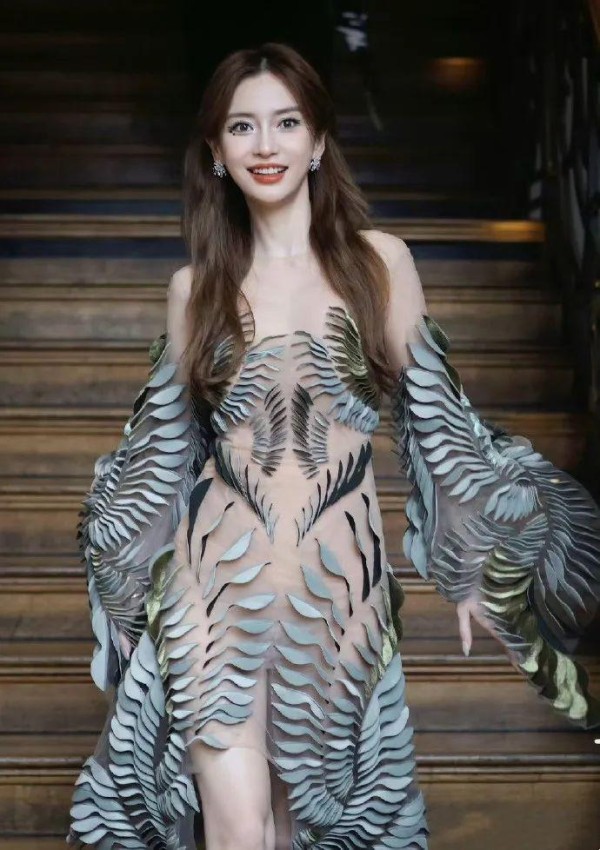 这次亮相,baby选择了一款设计超级特别的高定礼服,仔细看是由密集的树叶元素组成的镂空装饰,精致细腻得像艺术品一样。