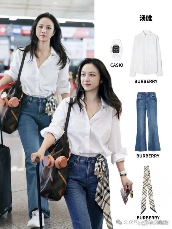第 4 套:汤唯|白衬衫 + 喇叭裤,极简松弛感职场风