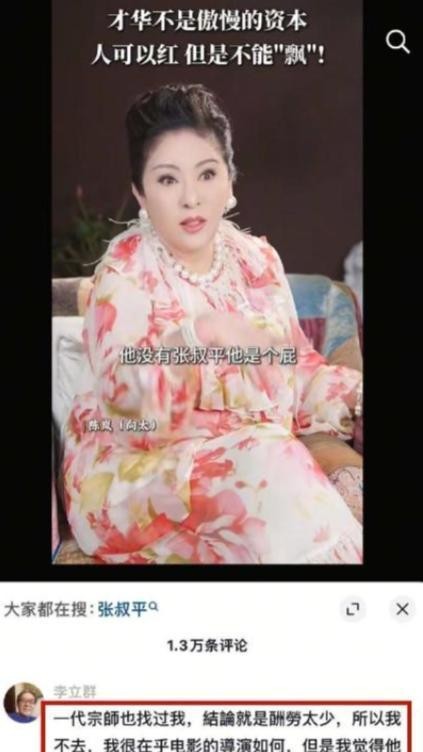 不过有意思的是,这次翻车后,圈内好些人都跳出来踩了一脚。向太那是毫不客气,直接说没有美术指导他啥也不是。李立群也在评论区里暗戳戳地说当年没接他的戏是有原因的,言外之意就是看不上这人。平时大家碍于面子不说,这会儿可好,一个个都憋不住了。