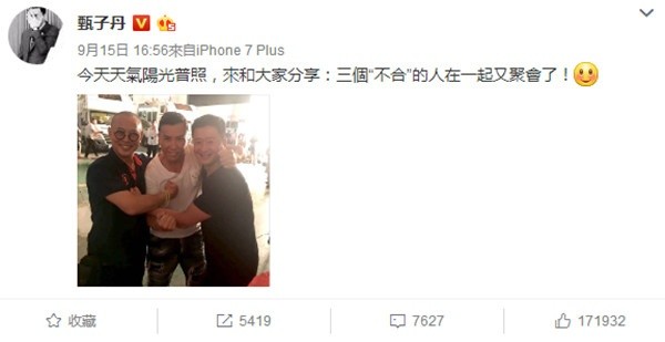 甄子丹在社交媒体上晒照