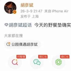 有网友精辟总结:“胡彦斌的野餐垫上,铺开的是内娱最稀缺的清醒——能随时抽离浮华,才证明从未被浮华驯服”。