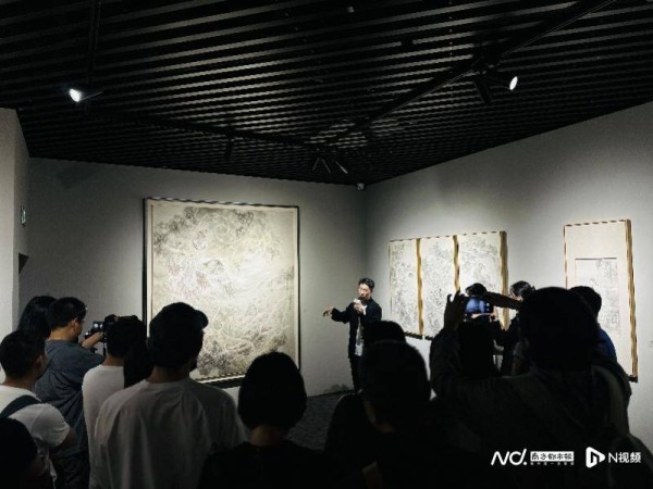 艺术家张龙围绕此次展览的主题及展陈,介绍了他如何在山水的灵气与自然的样貌中寻得灵感,怎样以笔墨解锁石头的精神属性,又如何在星垂平野、潮起潮生之间,捕捉古人面对宇宙与生命的原始敬畏。