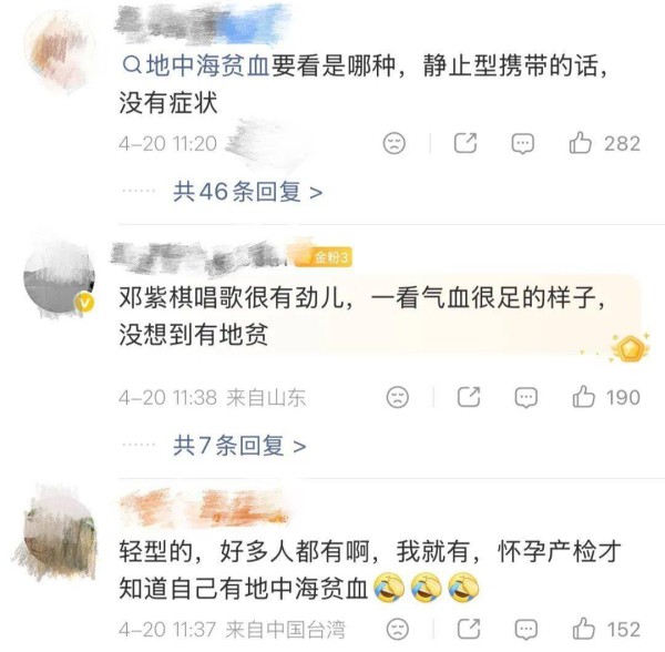 最近,歌手邓紫棋在一次直播中提到,自己可能携带“地中海贫血”的基因,此前一直不知情,直到最近才从母亲口中得知。