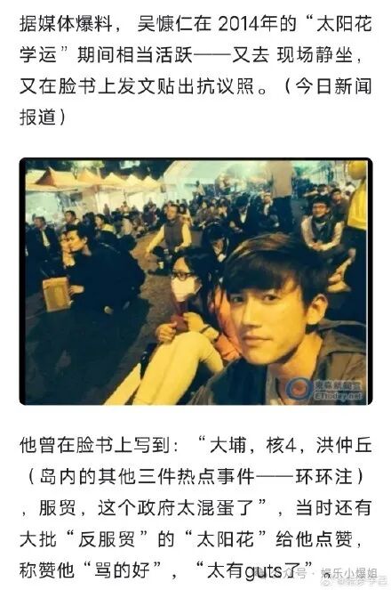 吴慷仁很多年支持过太阳H运动,所以屁股问题的确很大,孙俪跟他合作,也是昏了头了