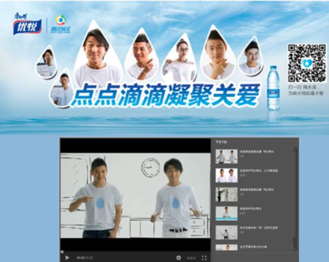 以康师傅优悦明星公益节水视频为例,内容上整个视频与康师傅“节水”诉求保持一致,形式上则主打“玩坏明星”。康师傅优悦水化身蓝色“小水滴”Q萌可爱;佟大为的藏头诗,田亮的方言版节水宣言,都让观众看完不禁会心一笑:“明星也是够拼的,公益竟然可以这么好玩!”羽泉、白百合等一众巨星的现身,使公益视频如病毒般全网扩散,品牌曝光量过亿!