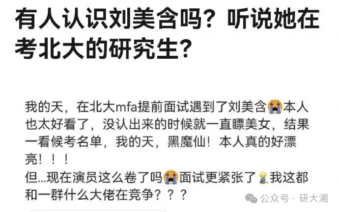 前有《武林外传》秀才的扮演者喻恩泰,上海戏剧学院博士、中央戏剧学院博士,赴英国牛津大学学习;后有刘昊然成为中国煤矿文工团的一名体制内的话剧演员,拿下“铁饭碗”。此外,在北大mfa提前面试现场遇到了演员刘美含,有网友发现她也出现在候考名单中。